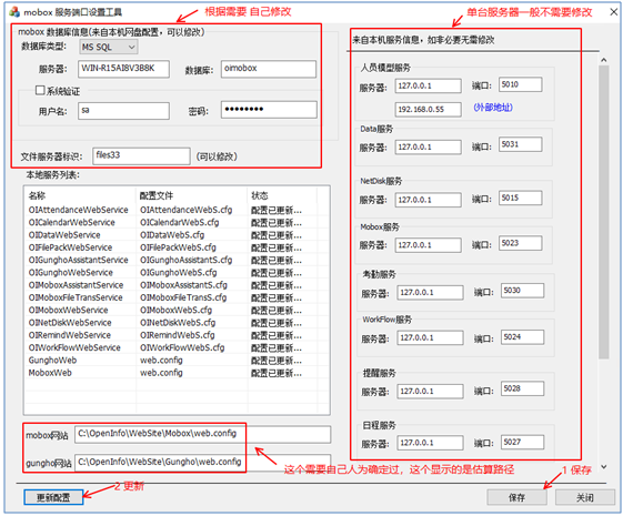運(yùn)行 moboxcfg.exe ,打開(kāi)界面,進(jìn)行Mobox服務(wù)器信息修改配置界面
