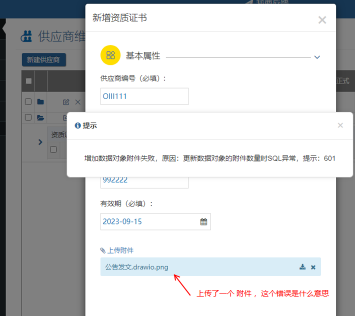 文件上傳:更新數據對象的附件數量時SQL異常,提示:601 2023/09/06 分類:產品中心 問題中心 736 問題描述:(20230906 發現) 若OIDateWebs 升級到 20230614 之后版本 ,而mobox數據對象是之前創建的,并且帶附件。存在OIDateWebs 升級后造成附件上傳異常問題 解決方法: 步驟1)下載OIDataWebS_R_20230905.zip 步驟2)更新OIDataWebS服務 步驟3)將數據對象里面的附件選擇先去掉 ,之后 ,重新添加附件選項 確定后,重新進入 ,將 附件 選項 重新 打上 標簽:問題 上一篇: 低代碼腳本開發-人員選擇 下一篇: 數據庫還原成功后(狀態為:關閉,正常),服務無法鏈接