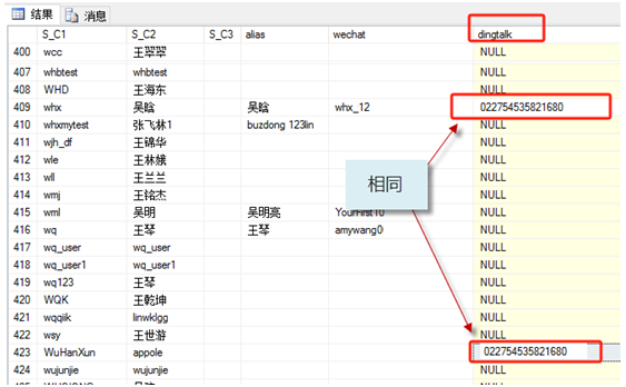 用戶提示不存在的判斷及解決方法 2023/11/15 分類:產品中心 產品手冊 問題中心 797 用戶不存在的判斷及解決方法 問題描述 今天whx 賬號登錄的時候 ,突然提示賬號不存在,無法登錄 進入后臺,通過人員管理模型查找賬號:whx 問題查找 打開數據庫管理器 進行數據庫查詢 SELECT TOP 1000 [S_C1] ,[S_C2]? AS NAME ,[S_C3] ,[s_C28] as alias ,[s_C30] as wechat ,[s_C43] as dingtalk ,[S_C4] As UKey FROM [OIOrg].[dbo].[OI_ORG_T008] 查詢后發現 本次出現這個用戶不存在的原因,就是 ,因為 這2個記錄相同了造成的 當然,用戶可能出現的情況有很多原因 ,這里明確一下 這個5個 字段,每一個字段里面 都不允許有重復數值出現 標簽:手冊問題 上一篇: 關于Gungho網站登錄后界面無反應的應對 下一篇: Excel數據導入Mobox低代碼平臺