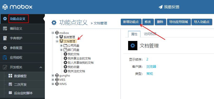 1)在Mobox的“功能點定義” 增加? 5001功能點