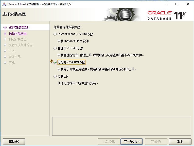 oracle 11g 客戶端安裝