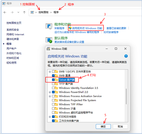 需要配置一下。在“控制面板”-》中選擇“程序和功能”,在“程序和功能”-》中選擇“打開或關閉Windows功能”。在彈出的“windows功能”窗口中將Telnet服務器和Telnet客戶端勾選并保存設置