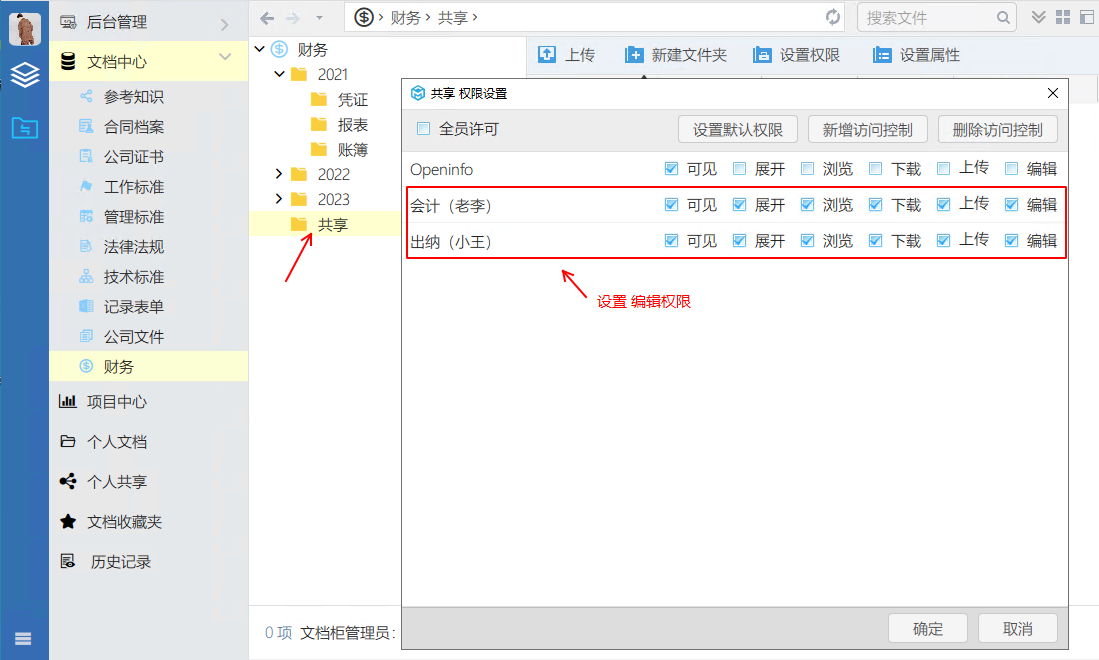 1、設(shè)置文檔柜的文件夾,啟用多人協(xié)同編輯功能;