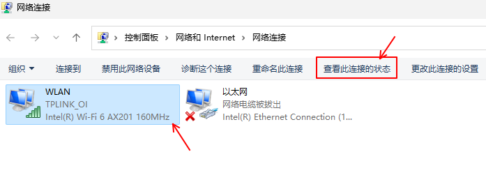 找到你的電腦鏈接的wifi適配器雙擊,或者選中后點擊圖上指出的“查看此鏈接狀態(tài)”