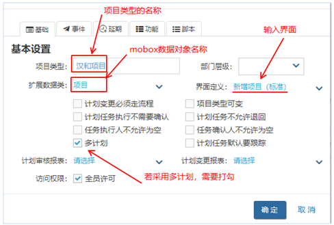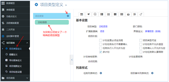 企業在實施項目管理系統的時候,不通類型的項目其屬性可能是不一樣的。而Gungho標準系統內對項目的屬性,主要包括(項目名稱、編號、開始結束日期等)。為了適應企業個性項目信息的輸入,我們需要通過Mobox平臺定義項目類型去適應這個需求