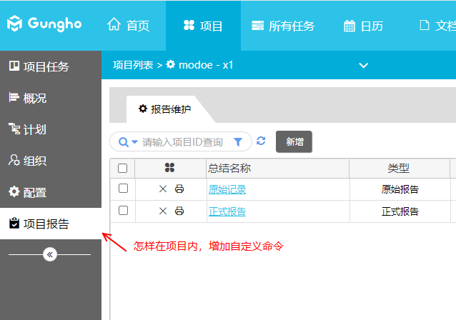 系統(tǒng)選擇某一個(gè)項(xiàng)目進(jìn)入后,針對(duì)項(xiàng)目操作增加自定義命令,截圖如下